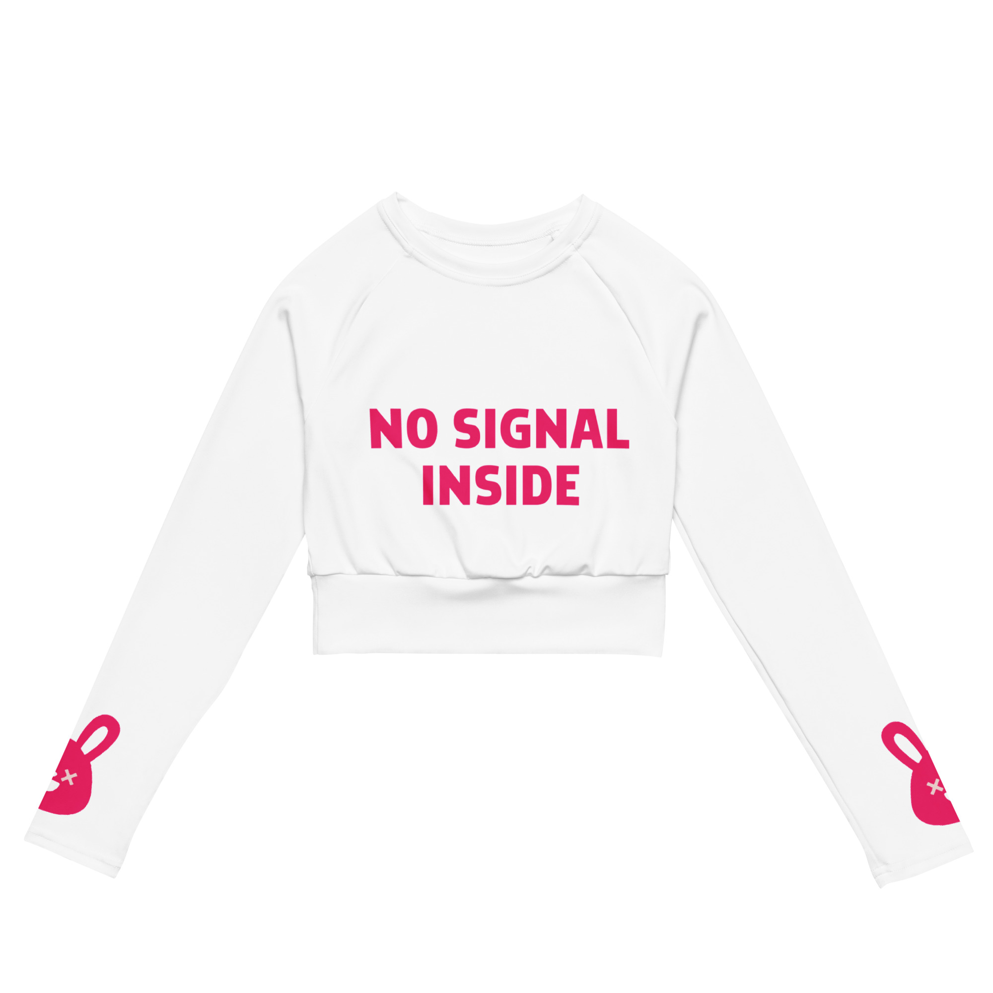 This long-sleeve crop top is made of recycled polyester and elastane, making it an eco-friendly choice for swimming, sports, or athleisure outfits. The crop top has a tear-away care label and a wide, double-layered waistline band for a comfortable fit.